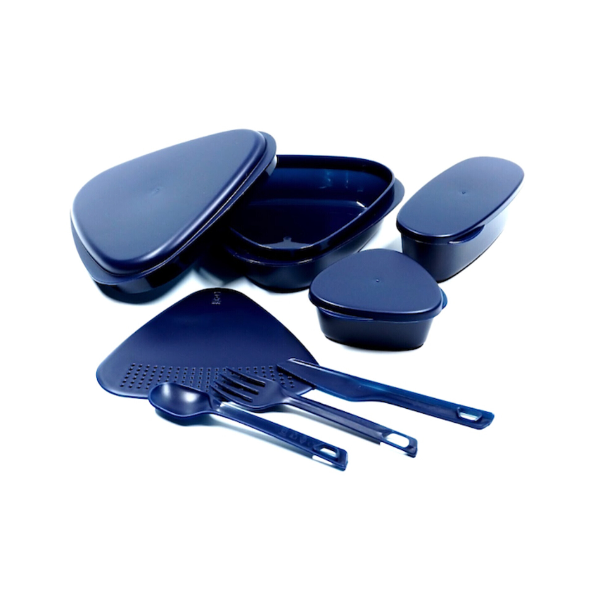 تعداد در پک: ظرف مثلثی با درب، ظرف مثلثی کوچک، ظرف مثلی بیضی، تخته، ست قاشق چنگال کارد